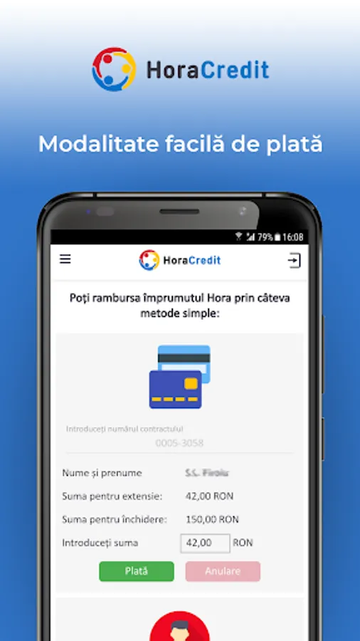 • online with a bank card (Visa/Maestro/Mastercard) by accessing horacredit.ro/pay