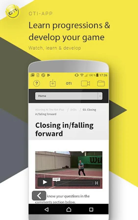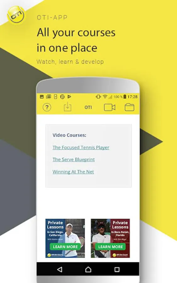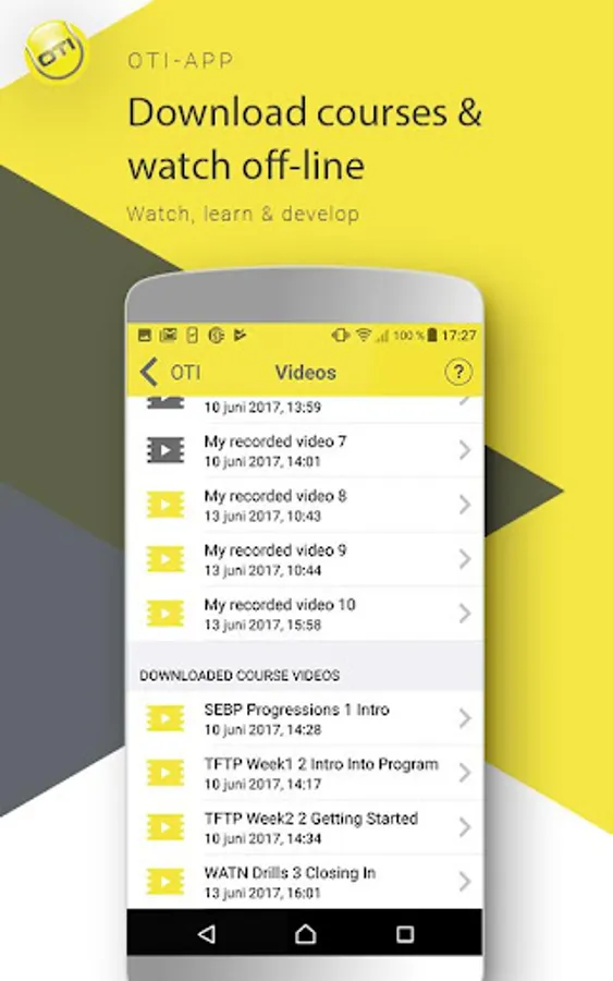 The OTI app allows you to view your courses online or to download them for offline viewing. You can also easily record a video of your stroke and send it to us with just a few clicks! Simply start recording your video with a button and then click on send when you are done.
