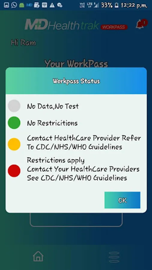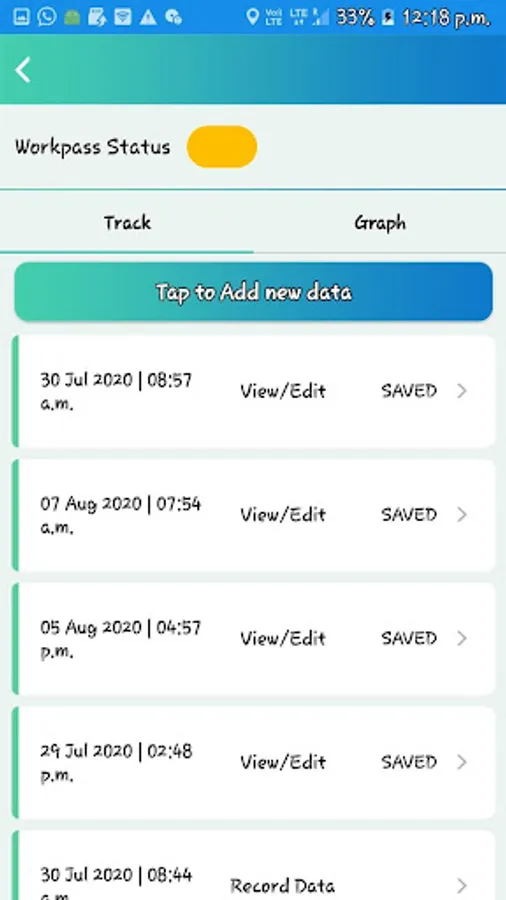 MDHealthTrak-Workpass enables users to independently record symptoms which are automatically scaled, organized, and presented in a graph. The app comes packed with a traffic light status that is automatically updated as per the symptoms recorded by the users. By using our app users can track/record daily health conditions about how they feel.