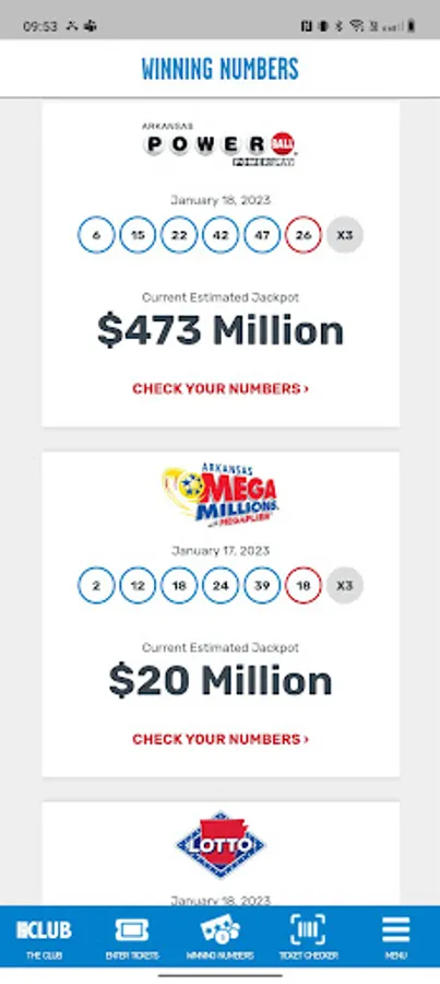- See current and past winning numbers and jackpots.