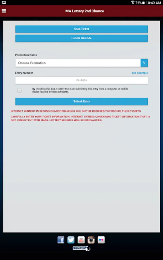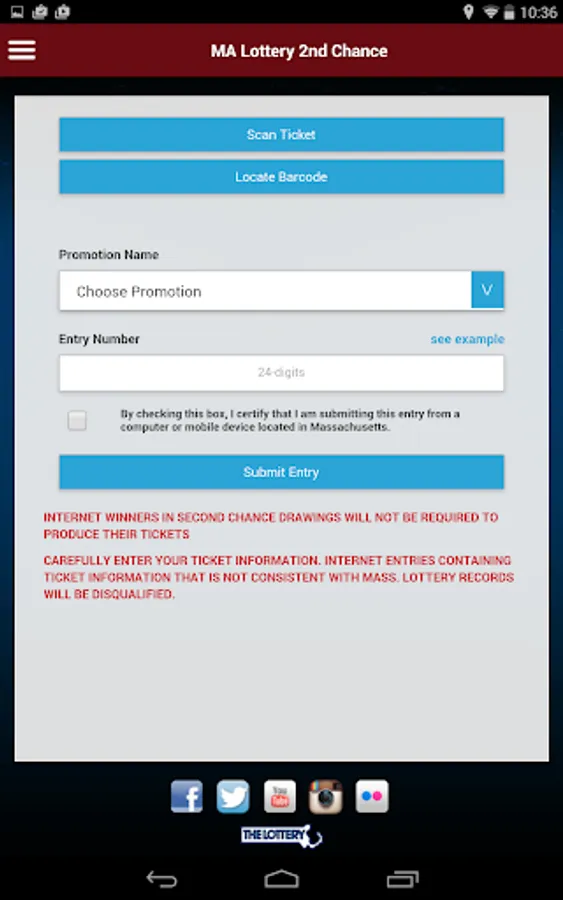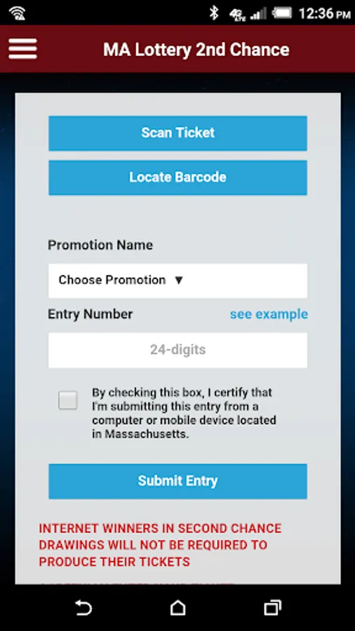 MA LOTTERY 2ND CHANCE APP DESCRIPTION: