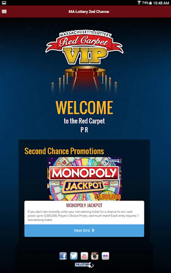 The official app of the Massachusetts Lottery Second Chance offers our players a quick and convenient means to scan non-winning instant tickets in new promotions for Second Chance Drawings. Players will also be able to play an interactive game and winners can redeem prizes from the Store and even access their VIP Players Club Account.