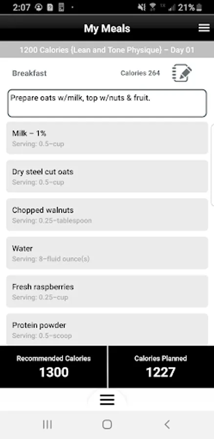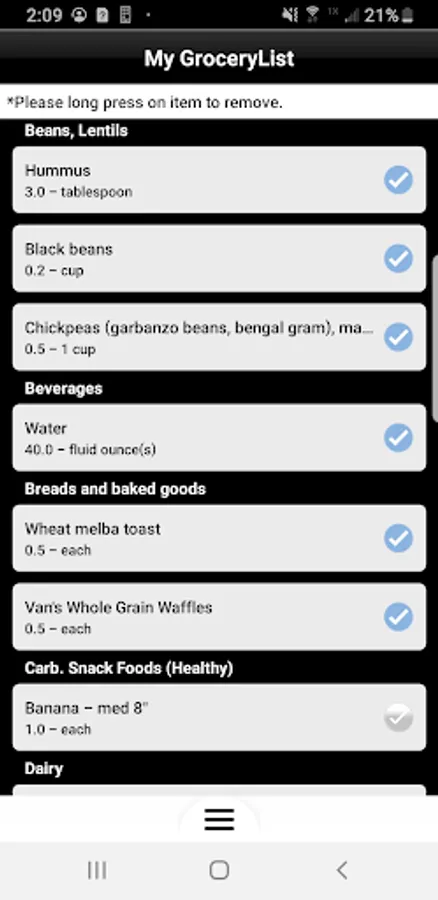 How it works: Once you login to your personalized profile, you can access your daily recommended meal plan, grocery list, log foods and activities to track your daily amount of calories consumed or burned during activities, and compare those numbers with what has been established by your goals. Your cloud account also allows logging online via a web based portal. Regardless if you log on your phone or the cloud account, all data is sync'd up and down. This logged information can then be viewed and monitored by you to help you stay on top of your goals!