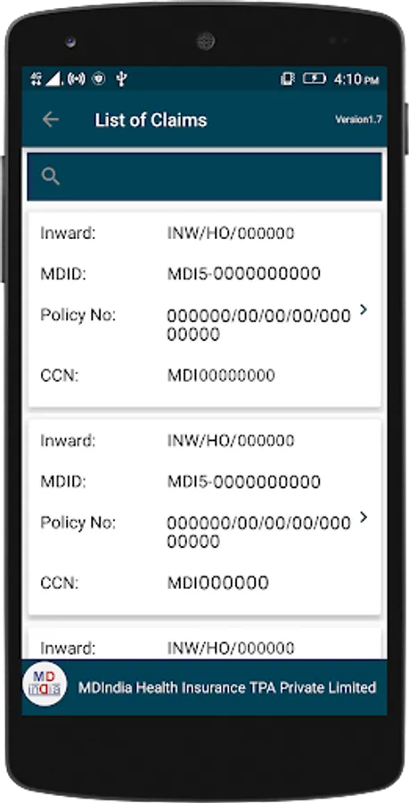 EClaims Android application is a latest application by MDIndia Healthcare Services (TPA) Pvt. Ltd. App offers most commonly used and selective functionalities like New Inward Generation, Search Claim and Document Upload. This app will be useful for generating inward on-the-go by filling out mandatory and optional fields such as MDID, Policy Number, Claim Type, Type of Hospitalization, etc. Also once the inward got generated, user will be able upload documents against particular document type in the form of scanned or captured images to process newly generated or existing inward claims.