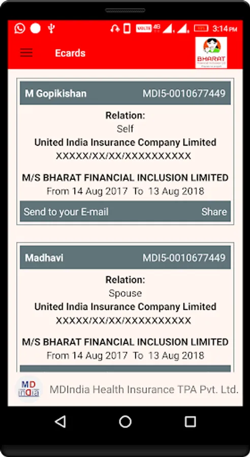 • Employee can see his/her dependent details and download e-card.