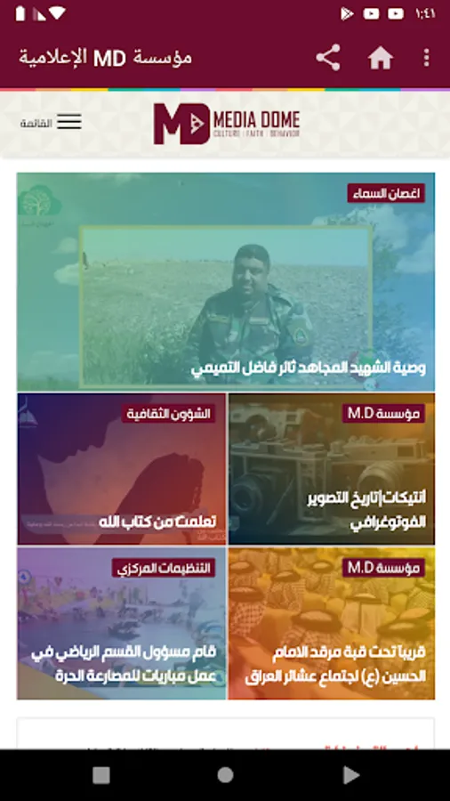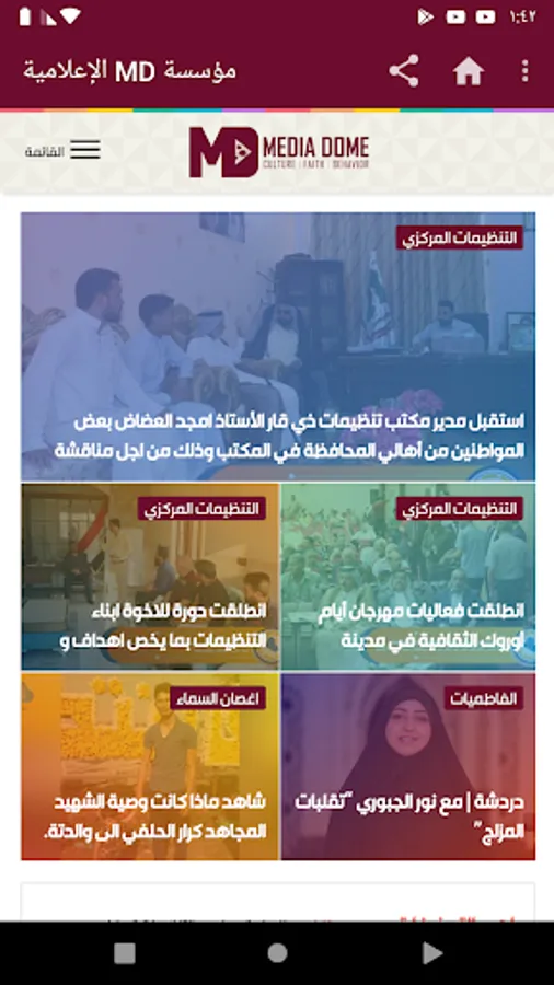, A cultural vessel floating on an unbroken history, its paddles and its sagging banner glorifying the glory of its concern to reach the human to the beach of love of the homeland and religion taken from the new media platform through which he communicates with his family carrying in his electronic package the features of jealousy and chastity of the earth and the triumphant mixture combines the spirit of society and its strength And youth through the platform "Fatimiyat" and platform "flower" and "Iraq Shabab."