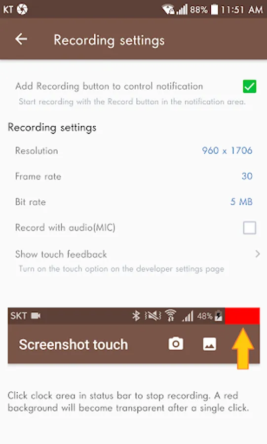 Screenshot touch requires the RECORD_AUDIO privilege to record the user's voice whilst recording the screen. This is a useful feature when creating any tutorial using video from a mobile phone. The sound recording function using the microphone is turned off by default.