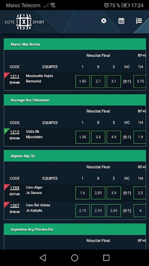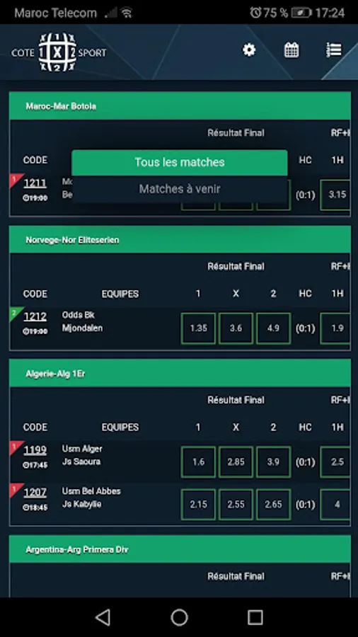Consult the program and ratings offered by Moroccan games and sports with real-time ratings.