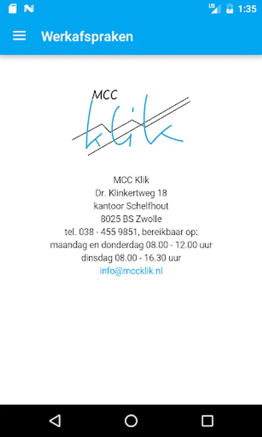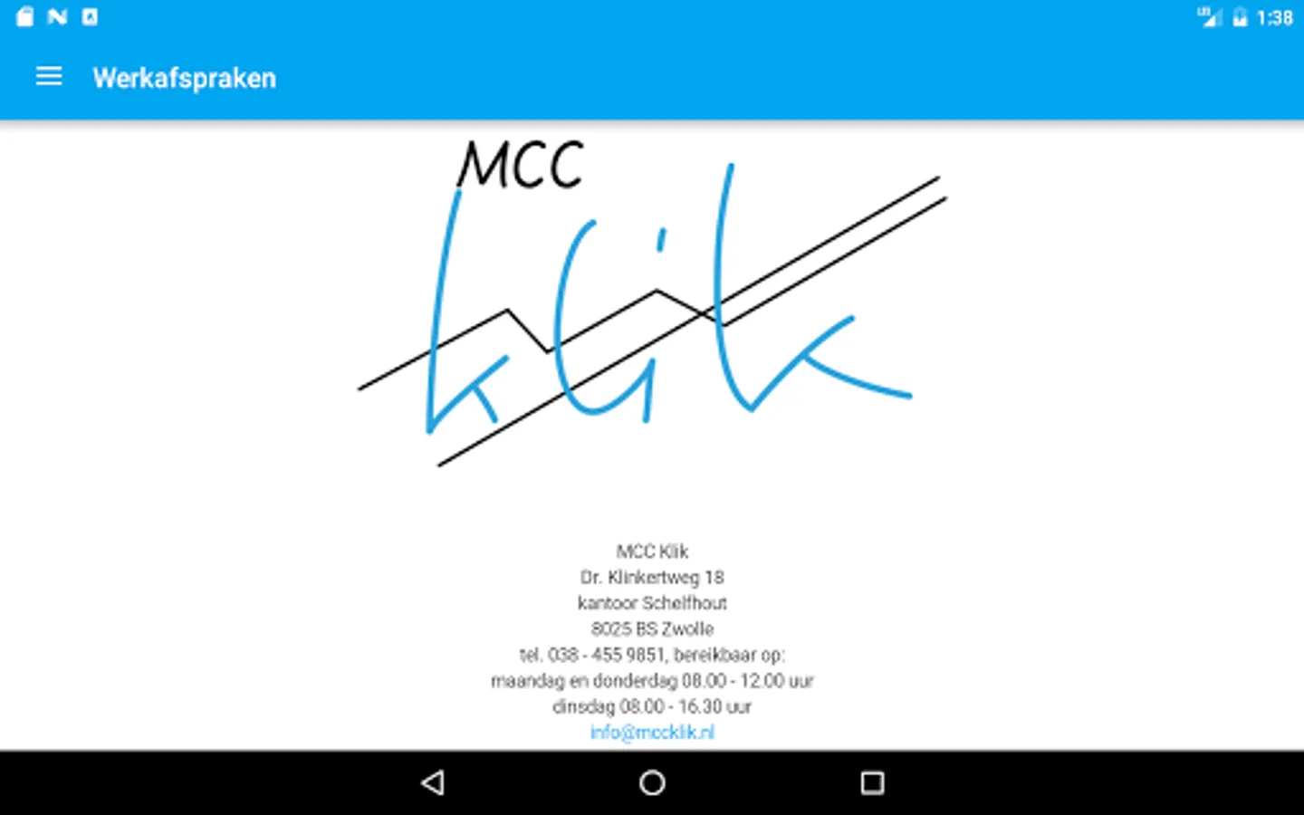 Click MCC aims to ensure good cooperation between GPs, specialists and pharmacists around the Isala Clinics in Zwolle and maintain. In this app you will find Zwolle Working arrangements made for that purpose, you will find medication appointments from the pharmacotherapeutic consultation, and find other associated relevant documents. For users with a login code is also the portrait of contact information available. It also comes with training materials offered through the app in digital form.