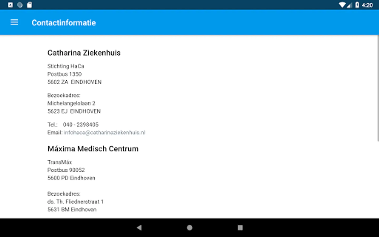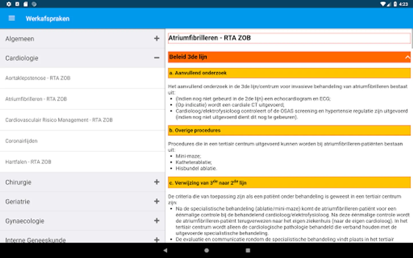 In addition to the agreements, the app also contains the newsletters of the transmural centers. For users with a log-in code for the Smoelenboek, the contact details of general practitioners, specialists in geriatric medicine and medical specialists can be accessed via the app.