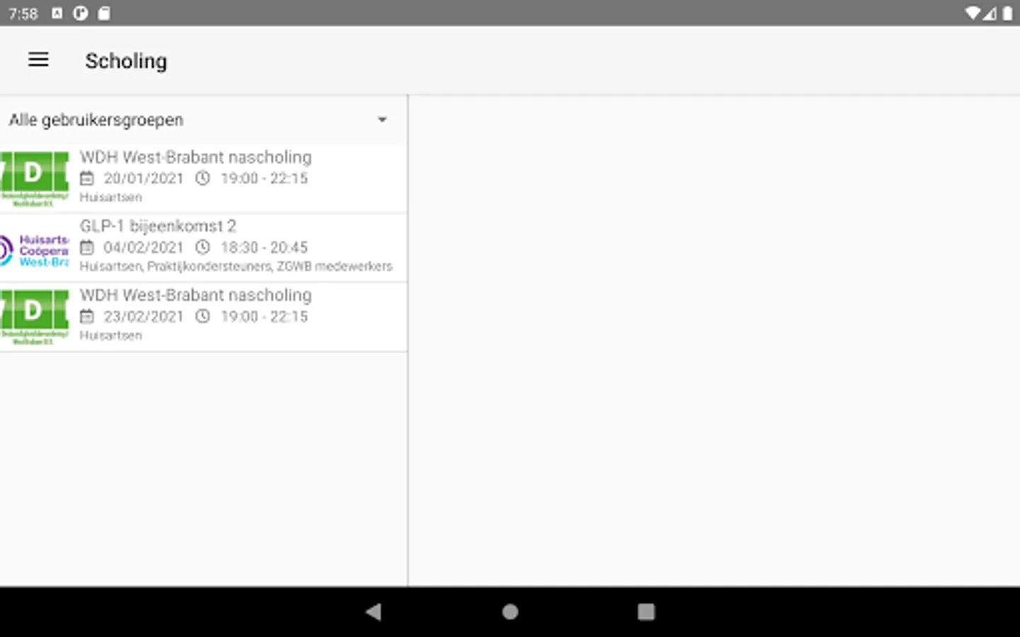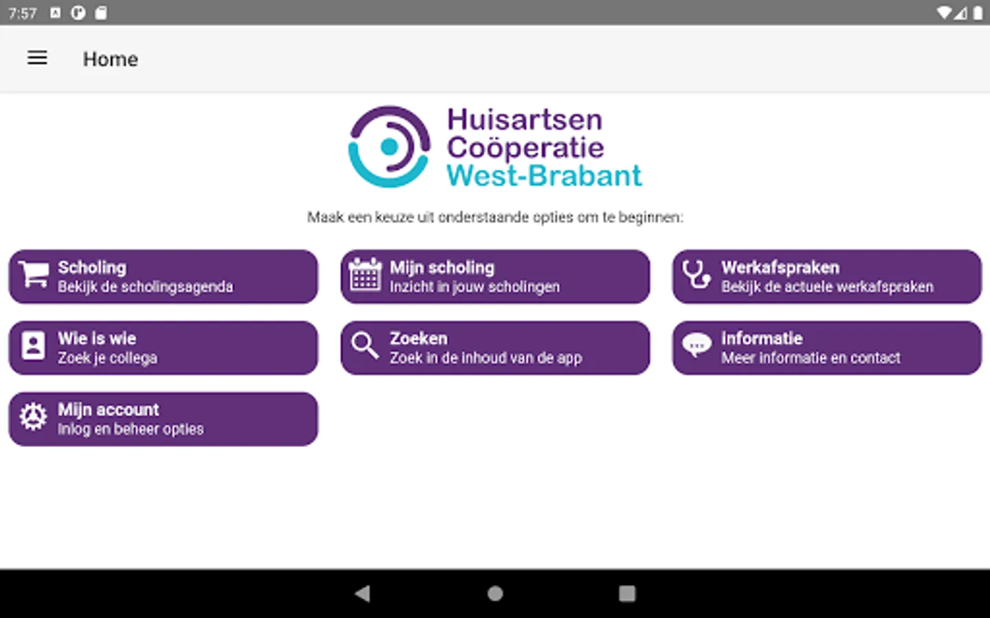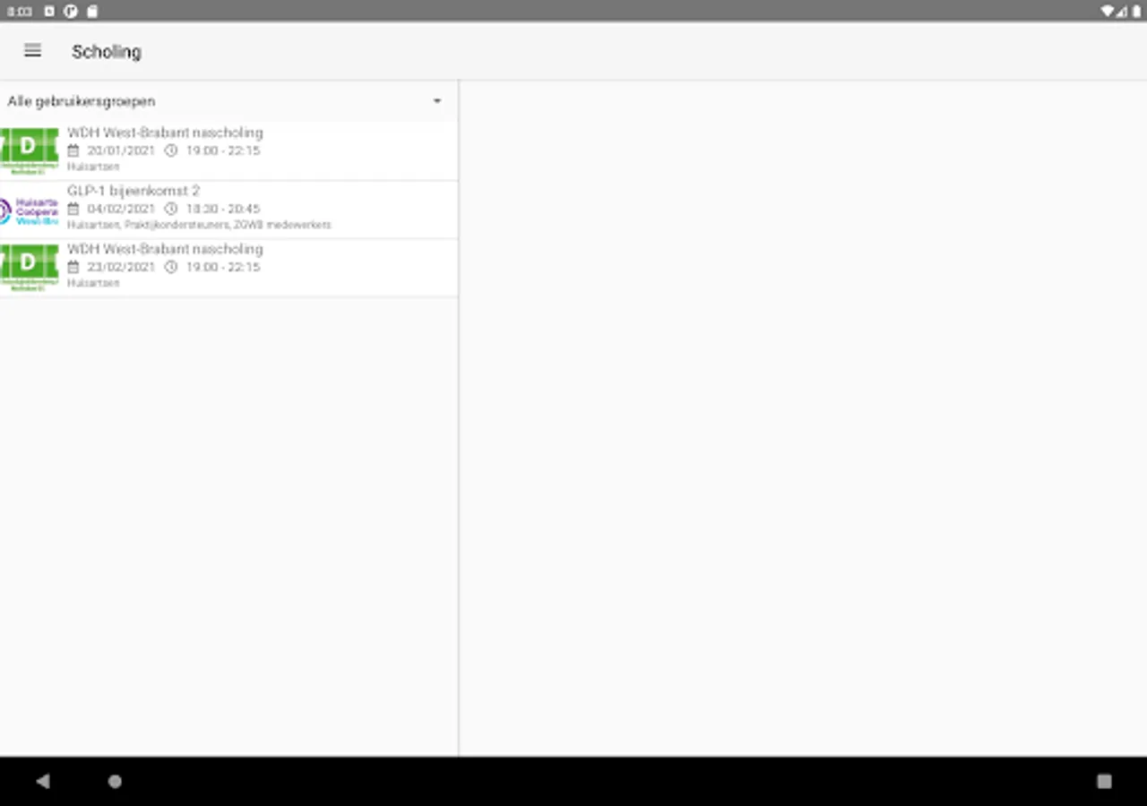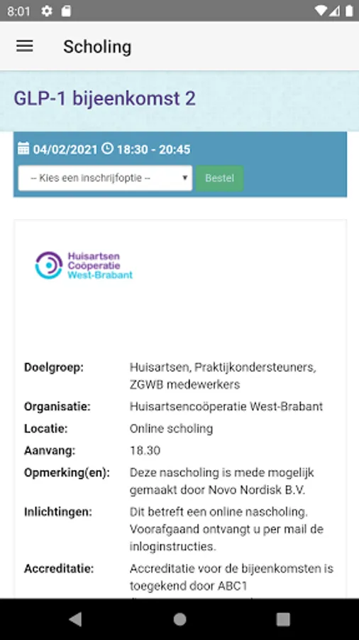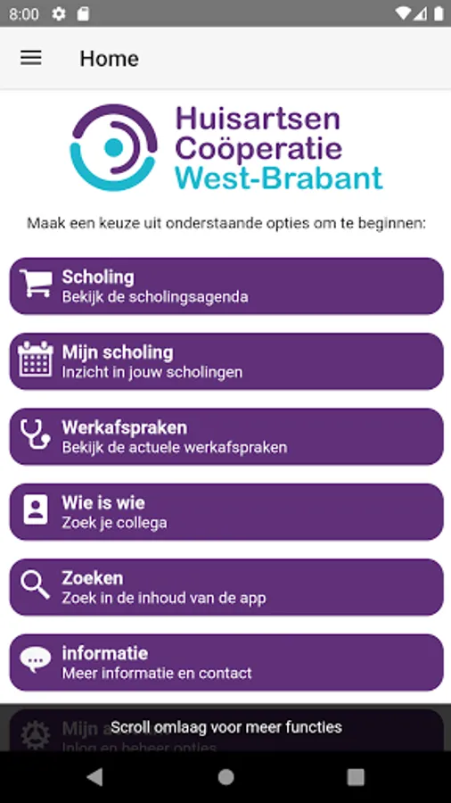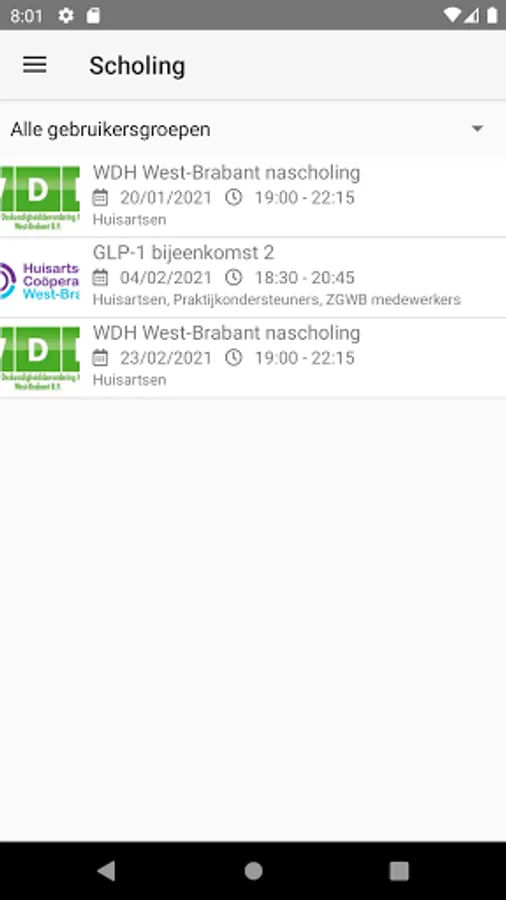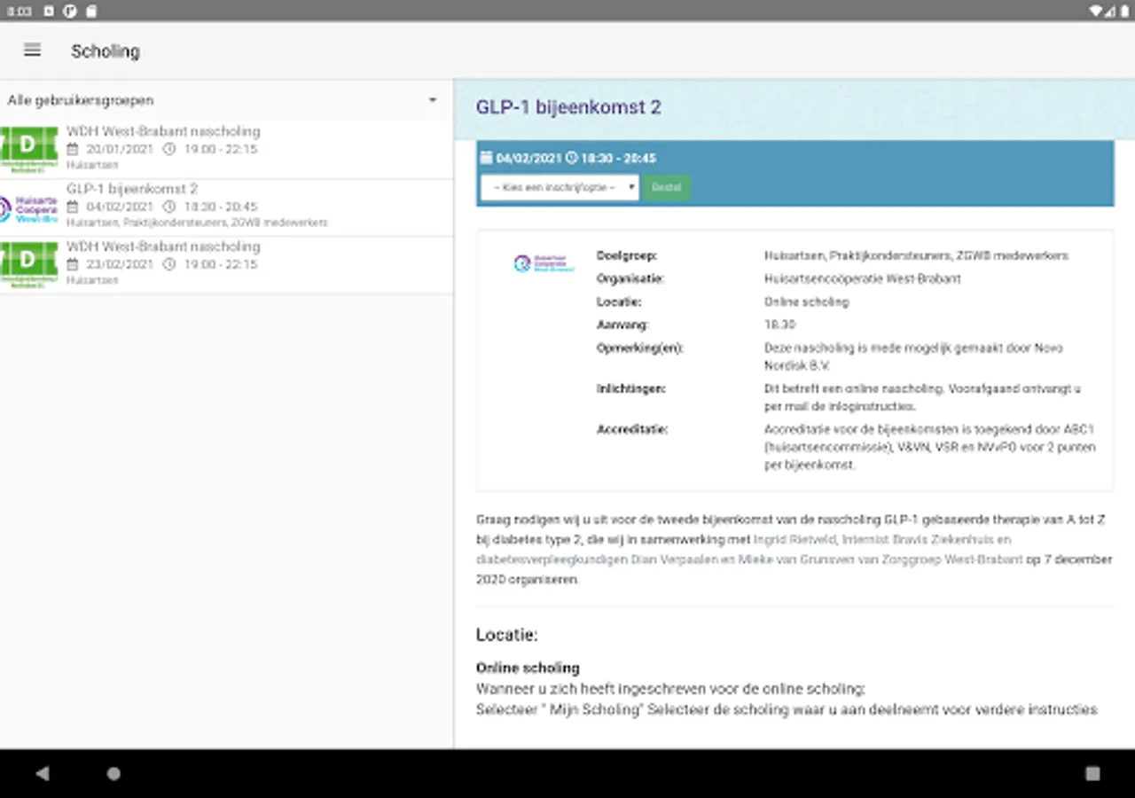 In this app you will find, among other things, the in-service training program of the General Practitioners Cooperative West Brabant. Via the app, users can register for courses and then find substantive information about the course topic in 'My Schooling'.
