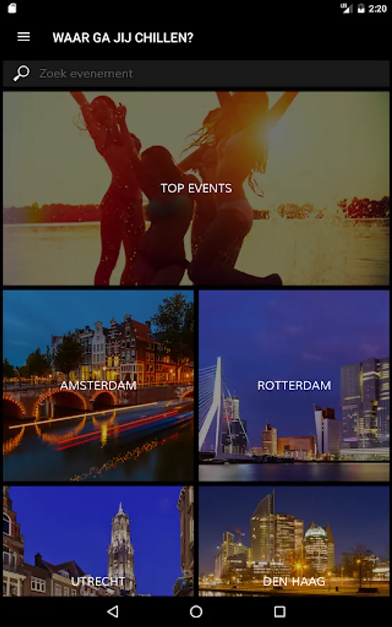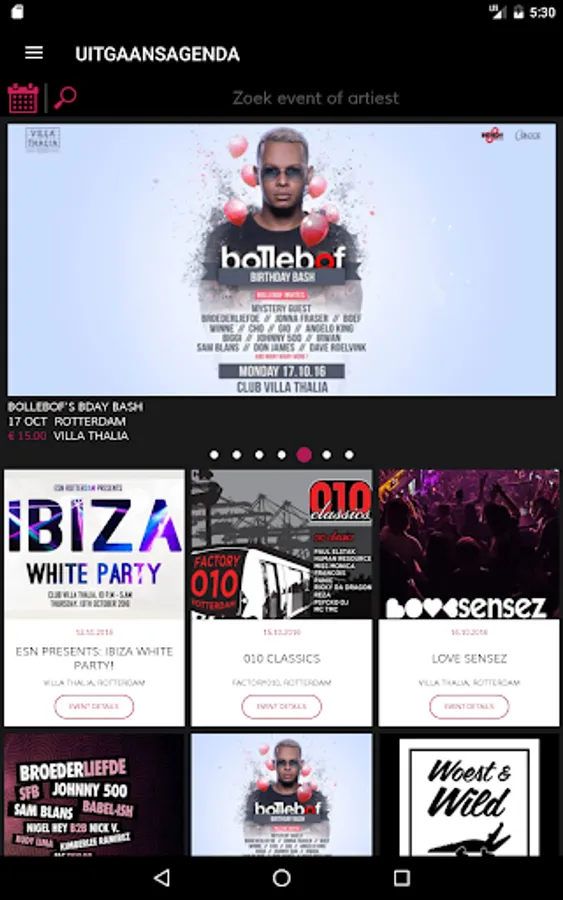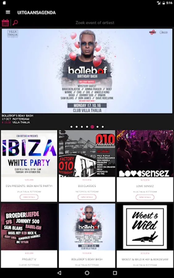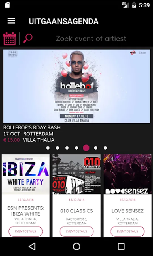 - Filter on your personal preferences: location, type of event, type of entertainment and music.