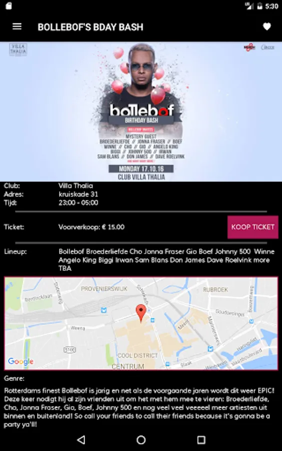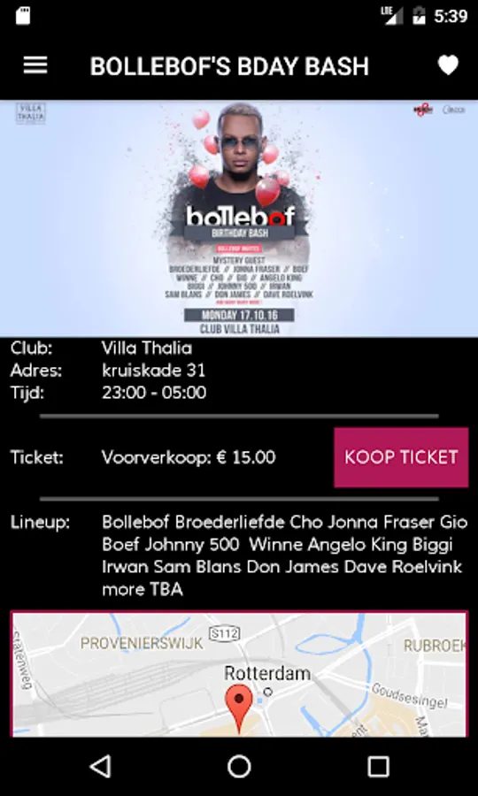 At a glance you can see which parties, concerts, bars, and clubs are nearby.