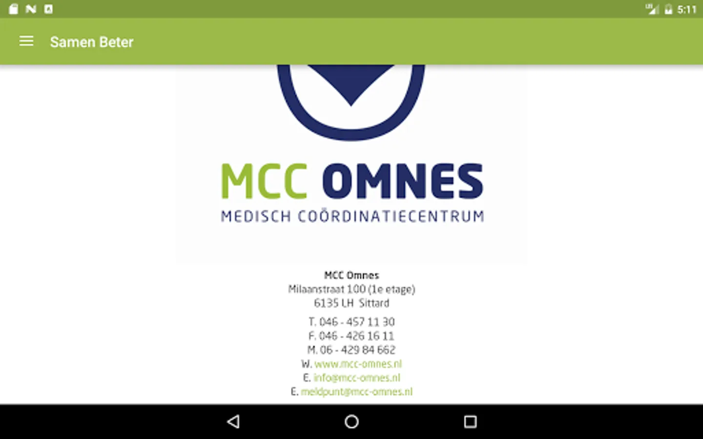 The MCC Omnes app contains all Working arrangements of MCC Omnes, information assistants and new items. For users with a login code for mugshots are also the contact details of doctors and medical specialists accessible through the app.