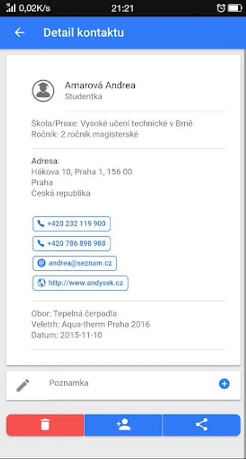 - contacts can be individually added to the contacts in your mobile phone or send or share as a vCard