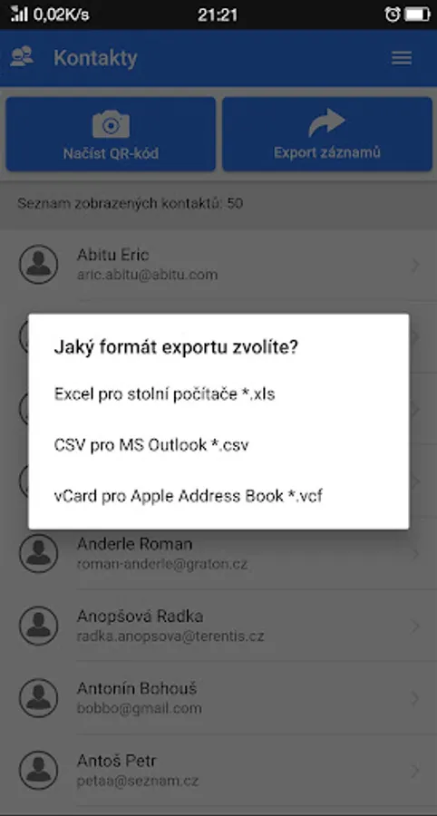 - Contacts can be exported in bulk and send or share a file as Excel, CSV (Comma delimited text) or mass vCard for further processing on the PC