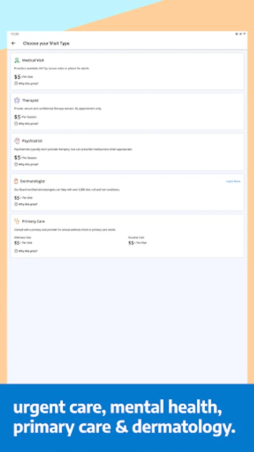 MDLIVE also offers behavioral health appointments with licensed therapists and board-certified psychiatrists as well as dermatology services.