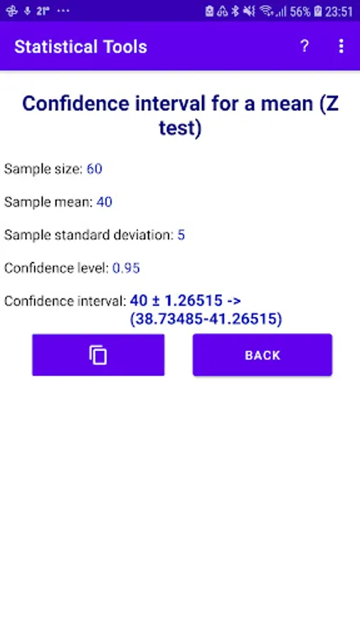 - Confidence interval: for a sample (T-test), for a mean (Z-test), for a proportion (Z-test) and for a variance (chi-squared test)