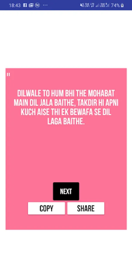 Yes You Can Share You Sad Feelings by This Latest Dard Shayari Application. Share Your Feelings With your Friends , Wife And Also Download And Upload In All Social Media Platform.