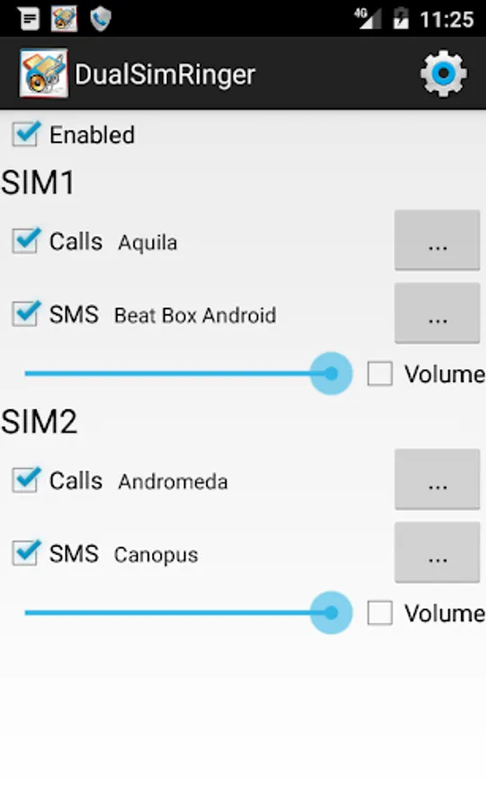 DualSimRinger allows you to set the following parameters for each SIM card: