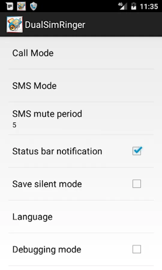 The application allows you to set the ringtones of calls and SMS to Dual SIM phones for each SIM separately. It is possible to configure exceptions for numbers from contacts.