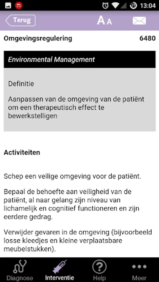 Nursing interventions is the Dutch translation of Nursing Interventions Classification (NIC). This app is based on the fourth, revised Dutch edition which again is a translation of the sixth American pressure.