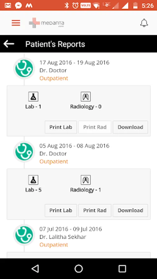 • Fully integrated with HIS and patient’s report portal giving a complete 360 degree view to your patient's past OPD consults, discharge summaries and Medanta lab and radiology reports.