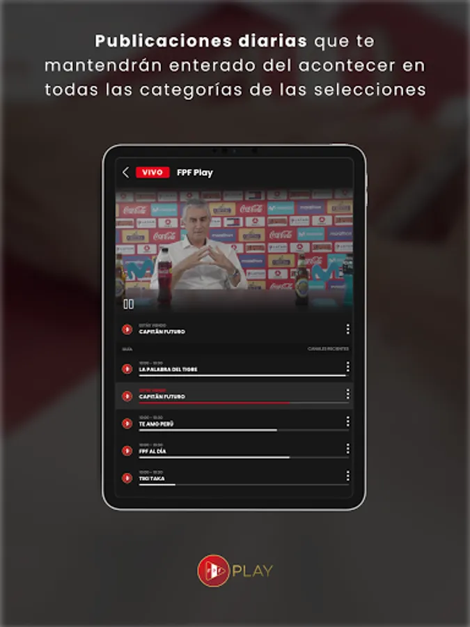 FPF Play is a platform created to get closer to the Peruvian team and make you feel part of it. Through exclusive content, we show you unpublished details of the national team in all its categories.