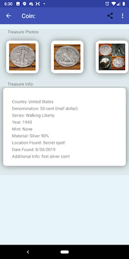 -Supports multiple photos per treasure and detailed info fields whch you can also edit afterwards if you research discover more about your treasure.