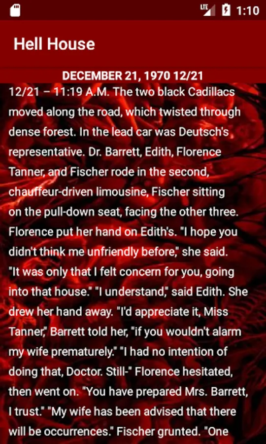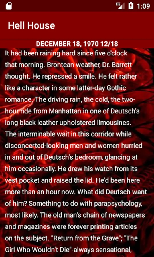Hell House by Richard Matheson is a story that takes four very different people into a house that has a life of it's own. After sitting empty and boarded up by the owners for thirty years, Rolf Rudolph Deutsch wants a small group of hand selected experts from several unique fields of study to go into the house and stay for one week. With the promise of great renumeration, all he asks in return is that they answer definitively the one question he has: Is there life after death? Close to death himself, Deutsch needs to know. In fact, he is consumed with the need to have that one question answered. In return for his money, he wants to know definitively if anything lives in the Belasco house in Maine dubbed Hell House.