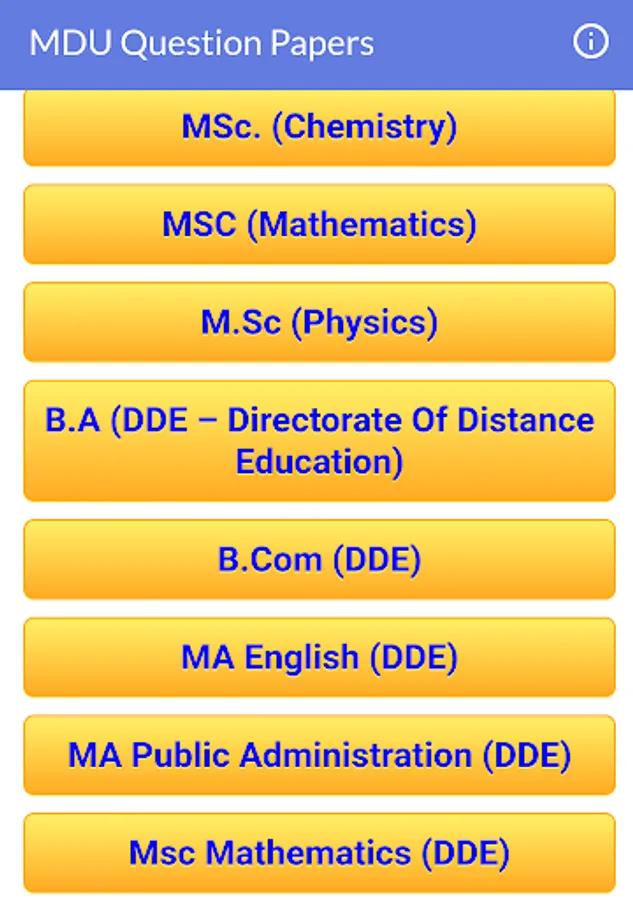 In This App You Will Find Previous And Last Year All Subject Maharshi Dayanand University, Rohtak Haryana (MDU) Question Papers For All Semesters PDF Of All Courses For Regular Exam And Distance.