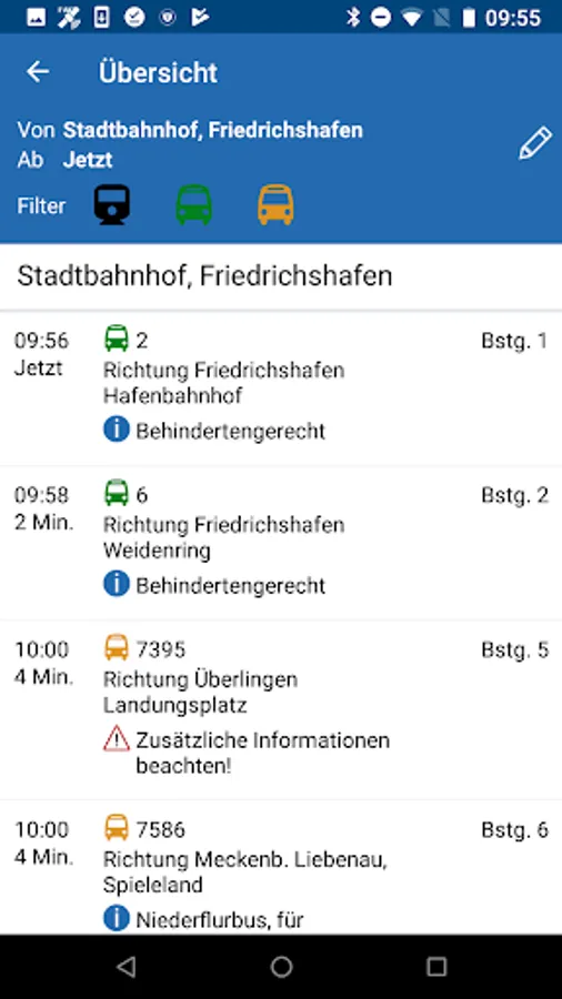 Timetable / Connections - All connections within the network and also within Baden-Württemberg can be quickly and easily recalled.
