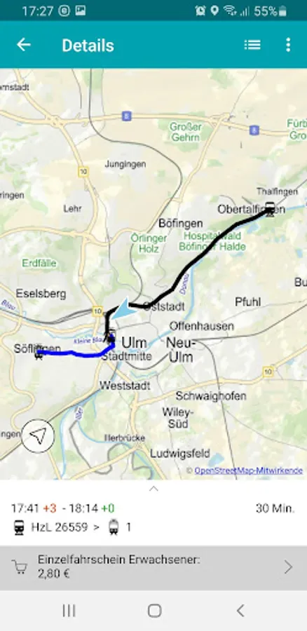 The DING app is the free timetable information system for local public transport in Ulm and the Alb-Donau, Biberach and Neu-Ulm districts.