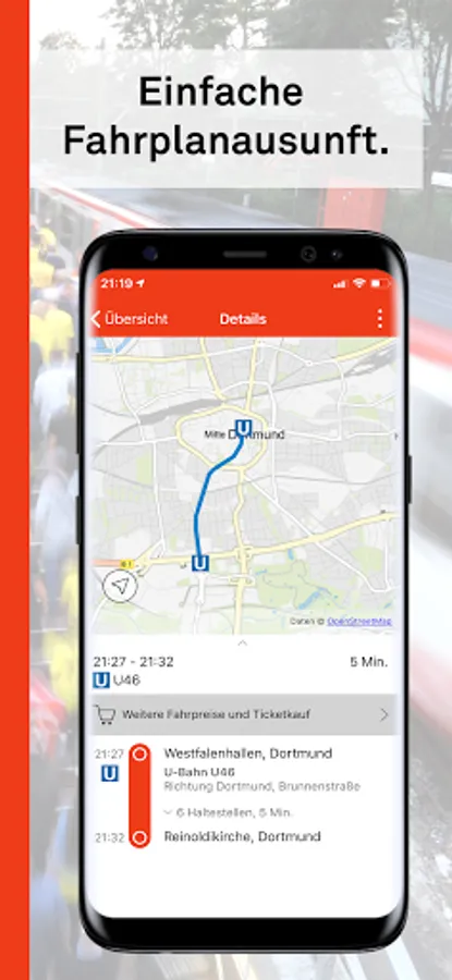 From Rombergpark to Dortmunder U? From the Reinoldikirche to the Westfalenhallen? With the DSW21 app you will find the ideal connection in Dortmund and in the entire VRR area and you can buy your ticket directly in the app.