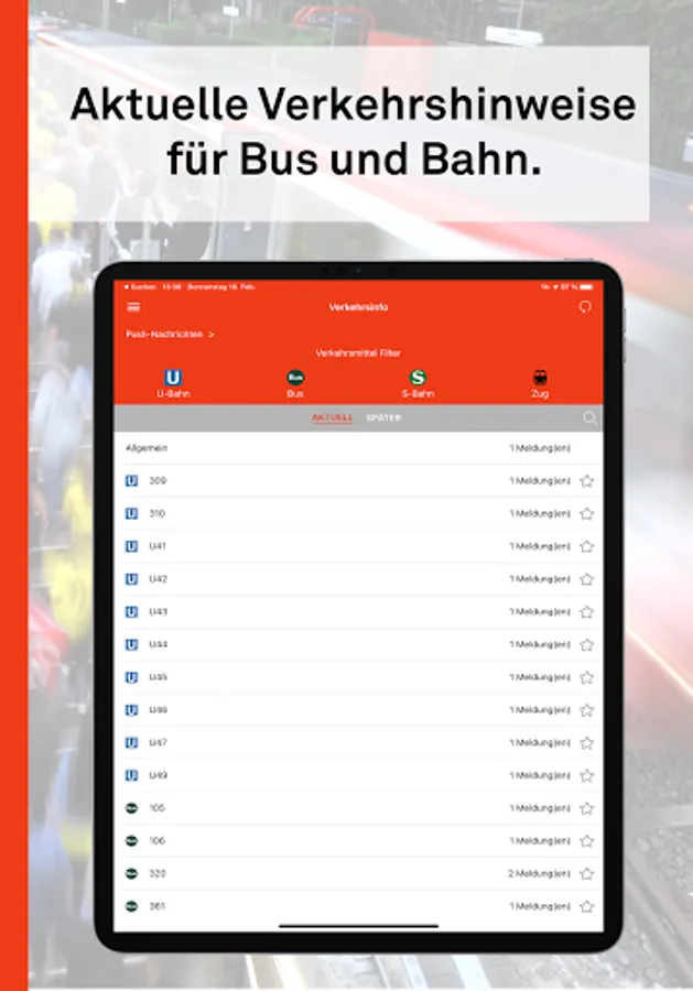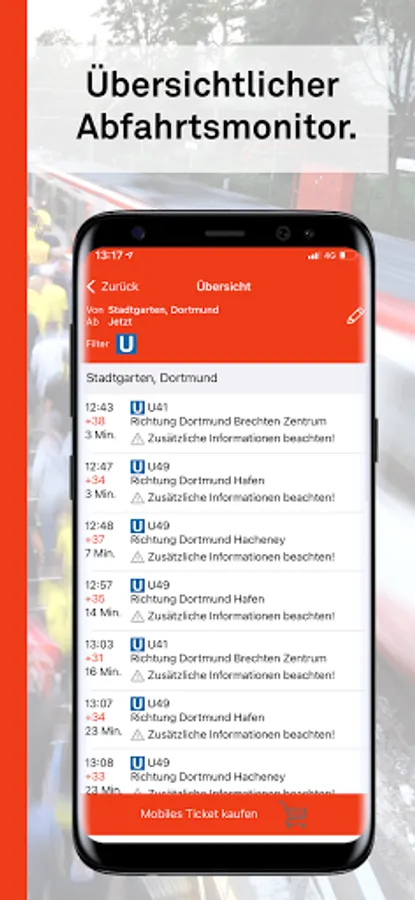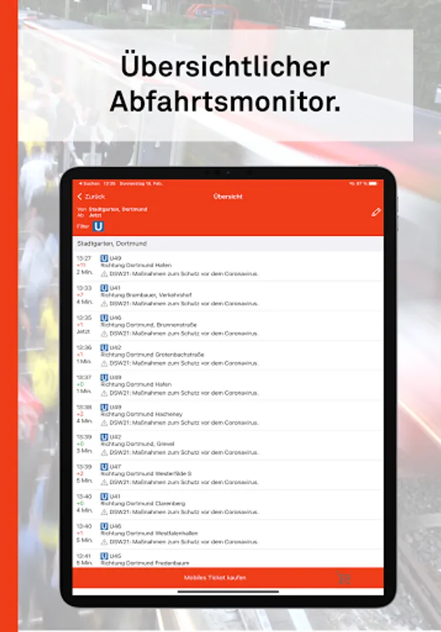 Now with punctuality display: plan your route with less waiting time at the stops.