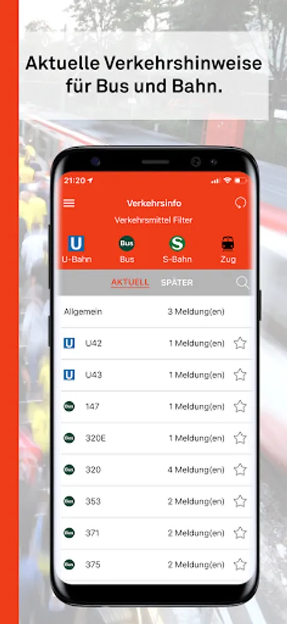 Are you leaving at a different stop or are you planning a trip on a different day? The quick entry from the search history and the favorites will quickly show you the right connection. Do you only use bus, tram, subway and no regional trains? Then select your preferred means of transport in the settings and the information adapts to your wishes.