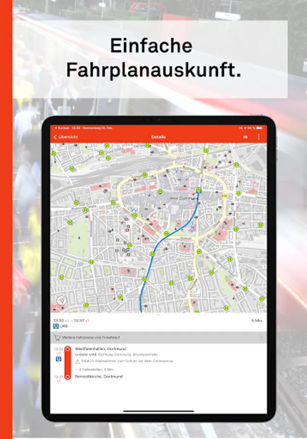 Do you want to go to Cologne, Aachen or Münster? The DSW21 app also shows you all connections to the neighboring groups. And not only that: Long-distance traffic connections can also be called up via the DSW21 app.