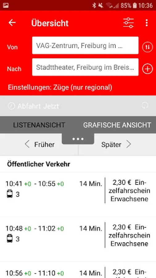 With VAG mobil, the official app of the Freiburger Verkehrs AG, you will find out how to reach your destination easiest, where and when the next busses and trains leave, if your preferred connection is on time and if you like bus, train, bike and car sharing can combine.