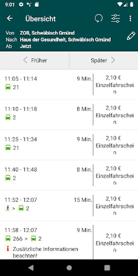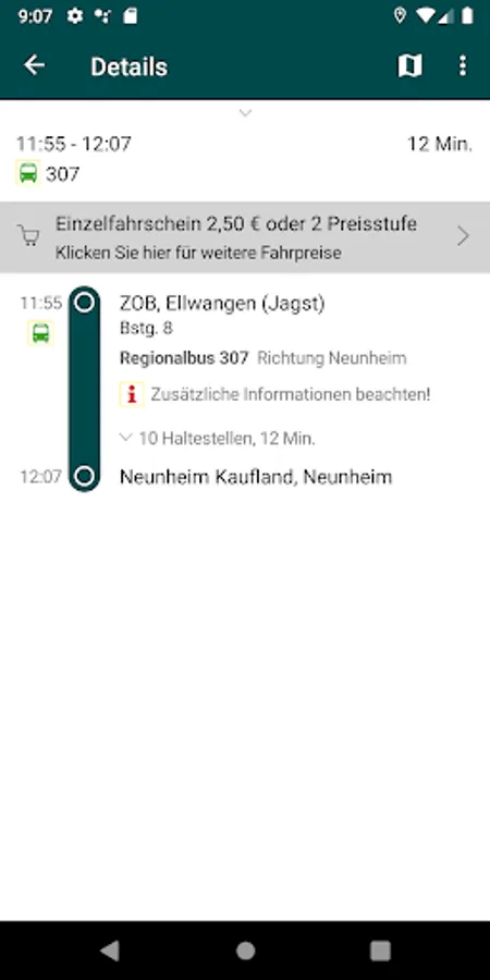 Via the trip information, connections within the network and beyond can be called up quickly and conveniently. The prices for different ticket types of the network are displayed.