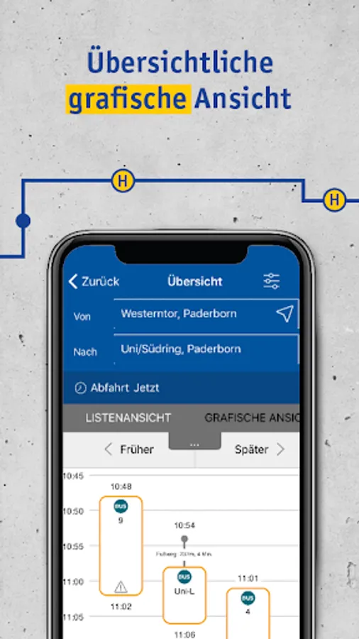 When exactly does the bus leave? Are there any current malfunctions? Where's the next stop? The PaderSprinter timetable app knows the answers. Whether timetable information, departure monitor of a specific stop, current disruptions or ticket purchases - all information can be displayed quickly, easily and directly from the current location.