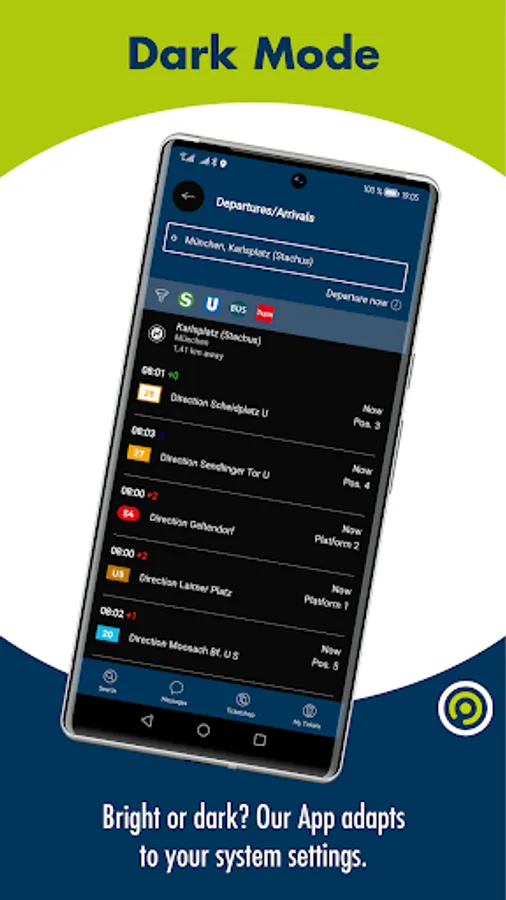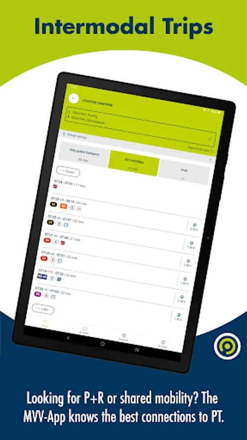 • Trips: The journey planner will help you to find the quickest route from A to B – in many cases with real-time information. Just enter the name of a stop, a point of interest or any desired address in Munich or the surrounding districts as your starting point or destination. With GPS you can also use your current location. The results include all footpath directions. The MVV-App also helps you buy the correct ticket for the selected journey. With just a few clicks you can purchase mobile tickets directly from the journey planner.