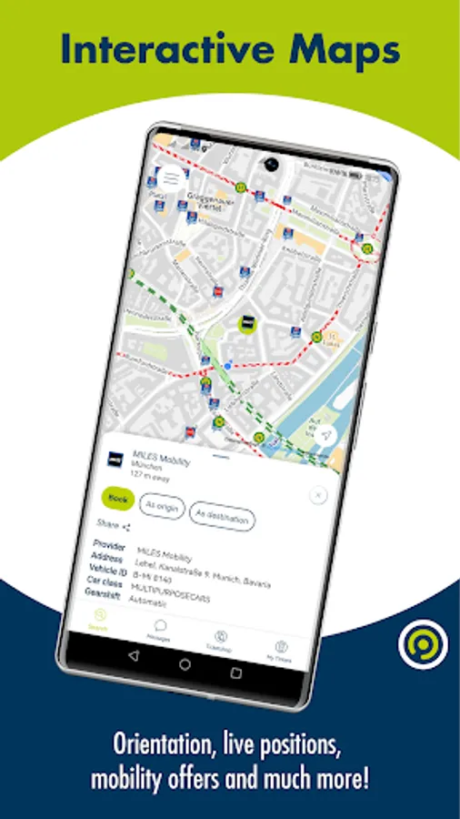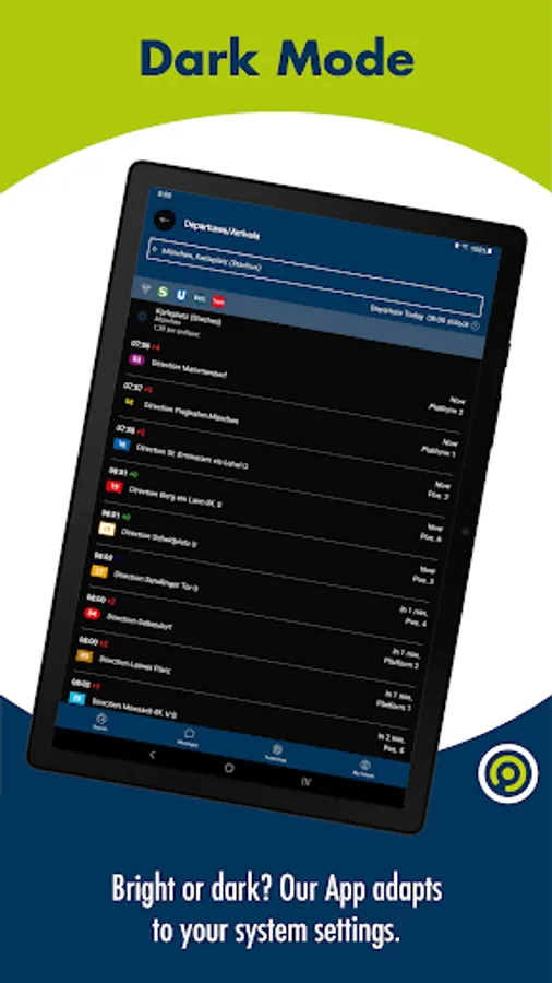 • Interactive map: The interactive map does not just help you to come along in the MVV area. You get access to further information such as nearby departures by using your GPS signal for example.
