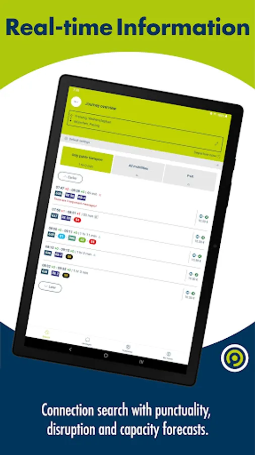 • Disruptions: At a glance, you can see disruptions that might affect your daily commute ordered by lines and their operation names. As yet, the descriptions of timetable changes are only available in German.