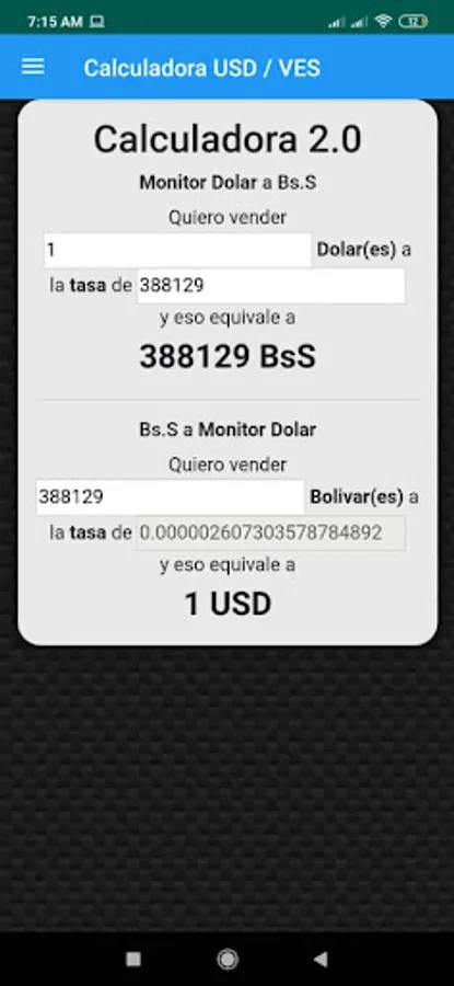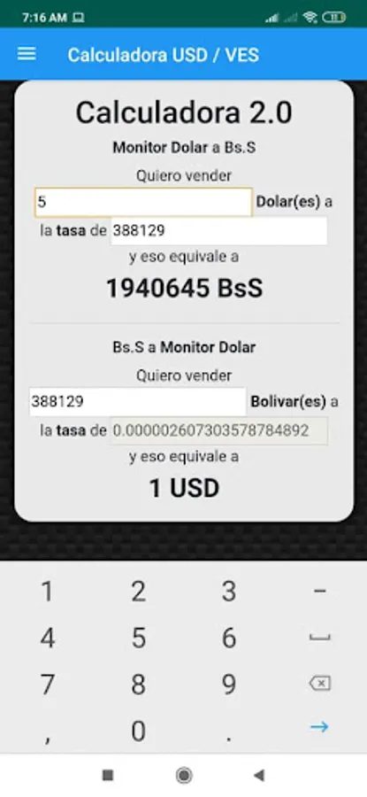 Calculadora USD/VES Monitor Do Screenshots