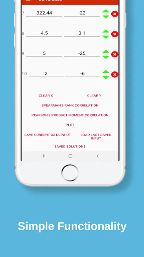 -Calculates the correlation between a set of data elements with a detailed tabulated solution