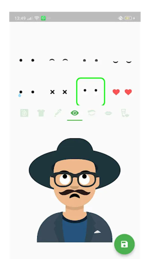 - face emotions on your avatar with different shapes of eyes, mouth and eyebrows