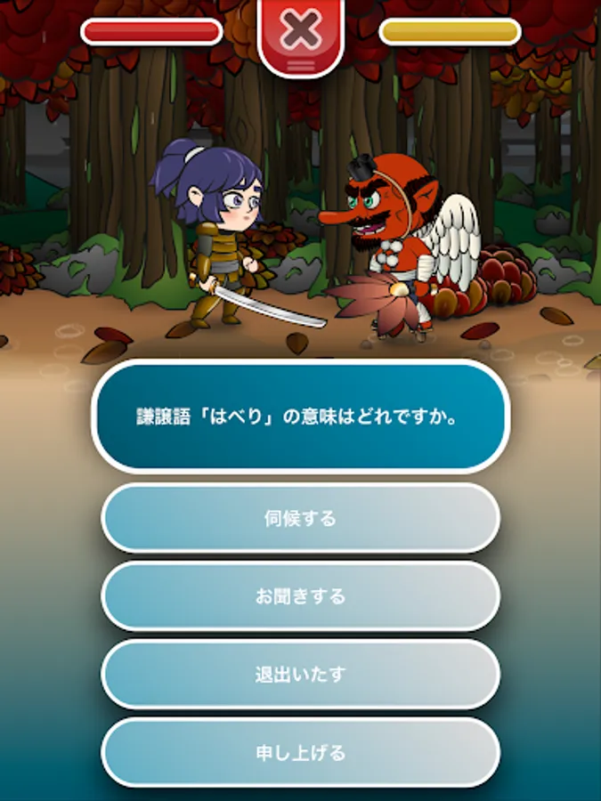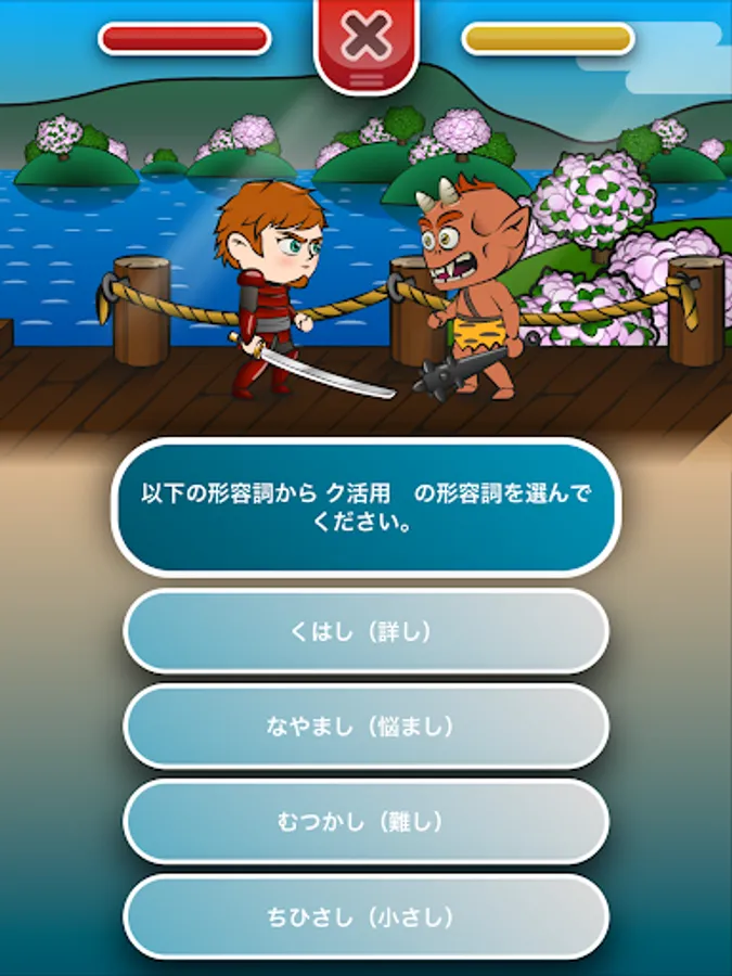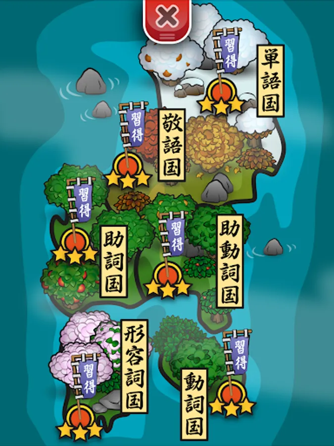 アドベンチャーゲーム形式で、遊びながら動詞・形容詞・助詞・助動詞・敬語・単語を効率的に覚えることができます。