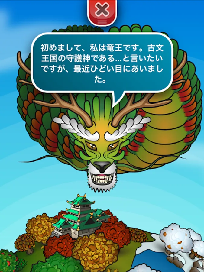 古文王国の守護神である竜王は、魔法の秘巻を盗まれてしまい、王国は魔物に支配されてしまいました。竜王の代わりに魔物と戦い、動詞国・形容詞国・助詞国・助動詞国・敬語国・単語国の秘巻を取り戻して下さい。魔物と戦いながら古文のそれぞれの分野をマスターし、古文王国に再び秩序と平和をもたらしましょう!