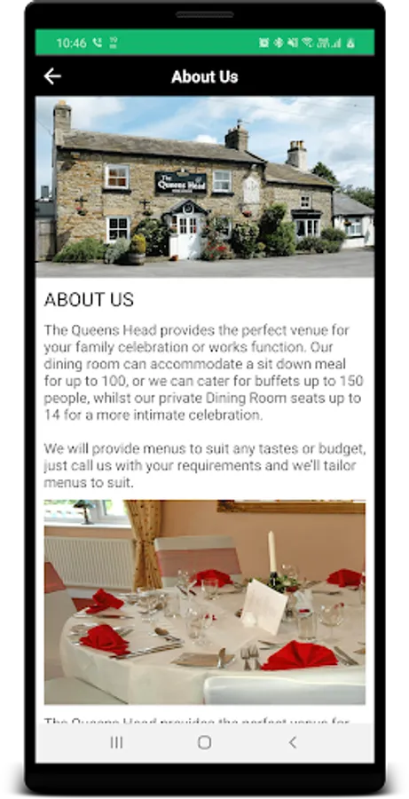 Welcome to the official App of the Queen’s Head, Finghall, a free house, restaurant and B&B in the North Yorkshire. We are a traditional country pub offering a relaxed dining experience and lovely rooms, with staff who care in a warm and friendly environment. We welcome bookings for weddings, christenings, funerals and birthday parties or just a family meal out mid-week