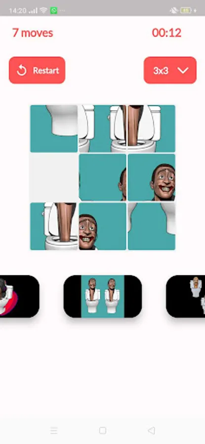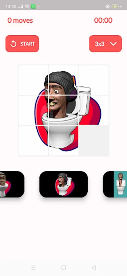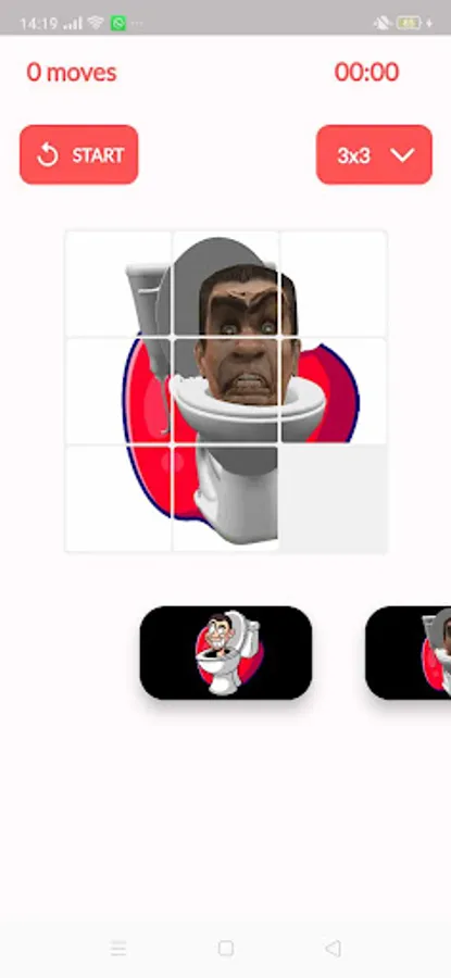 in this game skibidi toilet puzzle you can challenge yourself with image 3*3 or 4*4
